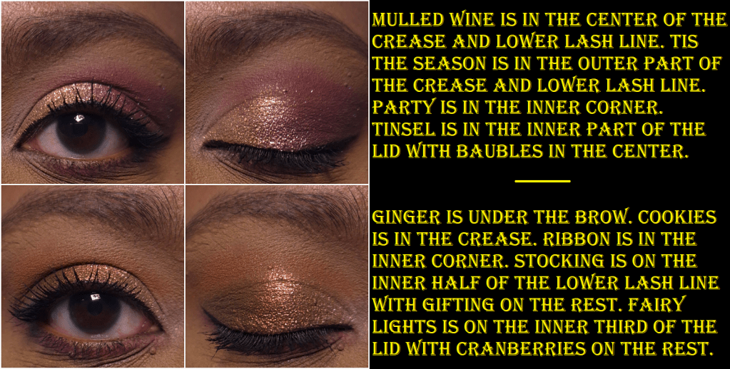 I like the colors in this palette, and if I got this in 2019, I think I’d have been much happier with this. But, now that I’ve been spoiled by buttery, creamy, soft, highly blendable and very expensive eyeshadows from Victoria Beckham Beauty, YSL, Pat Mcgrath, and more, I am most likely to only whip this palette out during the holiday season. Even though my beloved Oden’s Eye Merry Christmas Palette contains no purples, it’s at least a holiday palette that I use all year round.