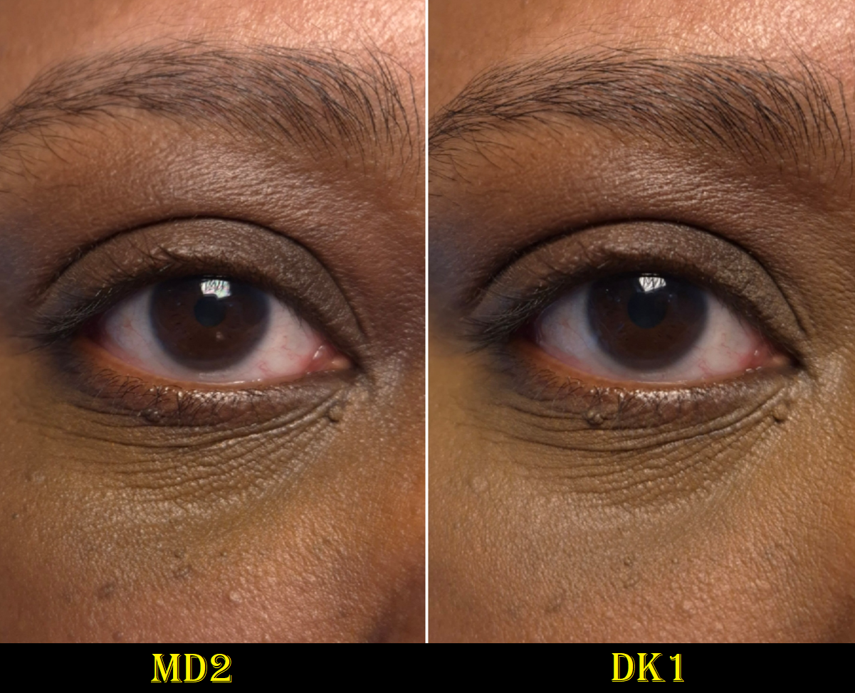 I was pleased with the amount of coverage I got. There was a tiny bit of fading early on (perhaps I didn’t apply enough), but then for the next six hours it continued to look the same and didn’t fade any further. When choosing a concealer for my under eye area, I want it to match the color of my skin above my brows and my cheek area since my eyelid discoloration will be covered up with a primer, eyeshadows, etc. MD1 was too light and MD2 was too dark and too strong of a peachy-orange color and turned olive looking on me. I was going to give up there, but decided to try DK1 anyway, and it was definitely the closest match of the bunch! It’s still a bit neutral compared to the warmth of my surrounding skin color, but I think I can still pull it off when the rest of my makeup goes on.