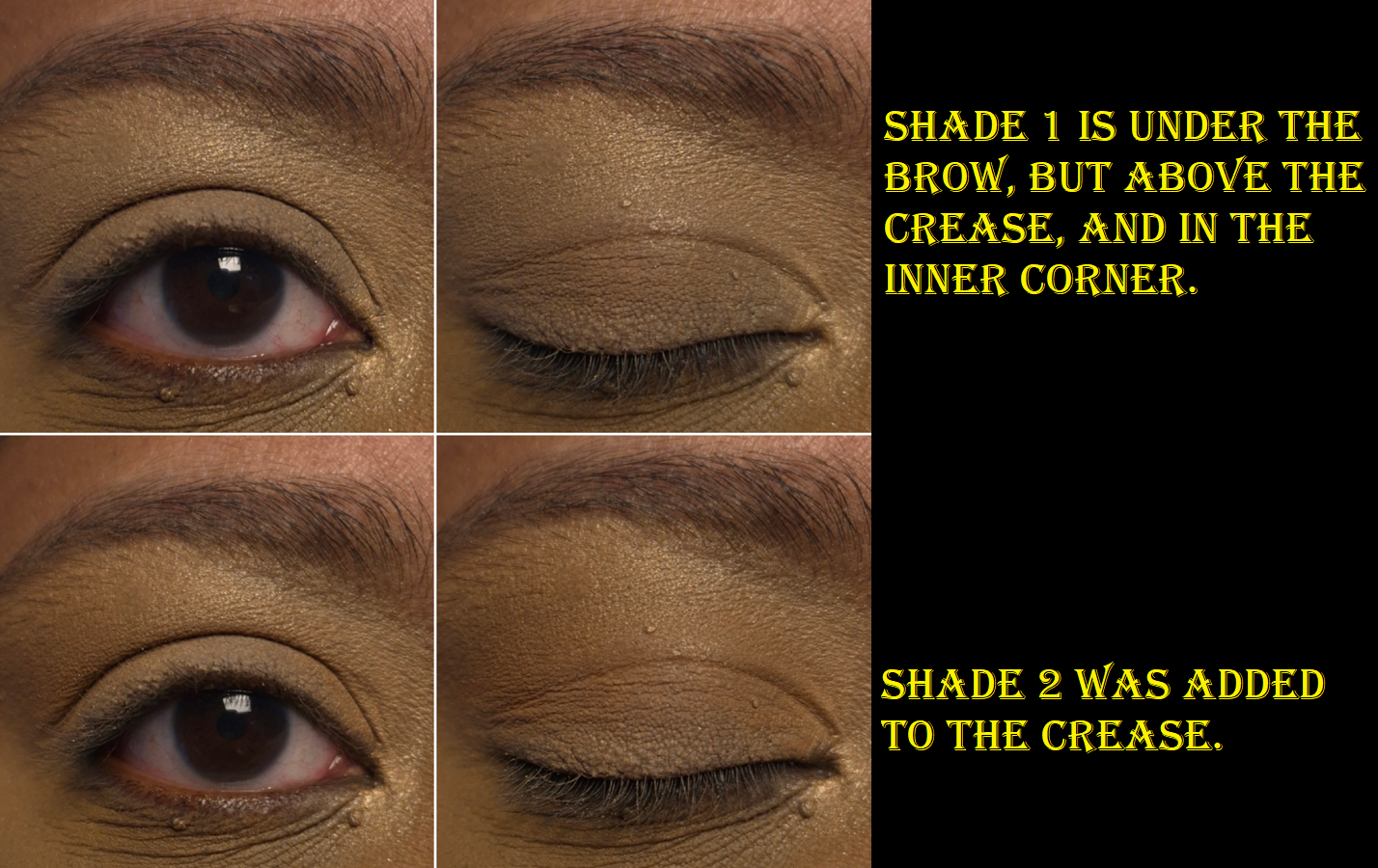 The photos above and below are the 4 steps to creating a single eye look. I wanted to show the process because of how easy it is for Shade 1 and 2 to get lost in the overall look.