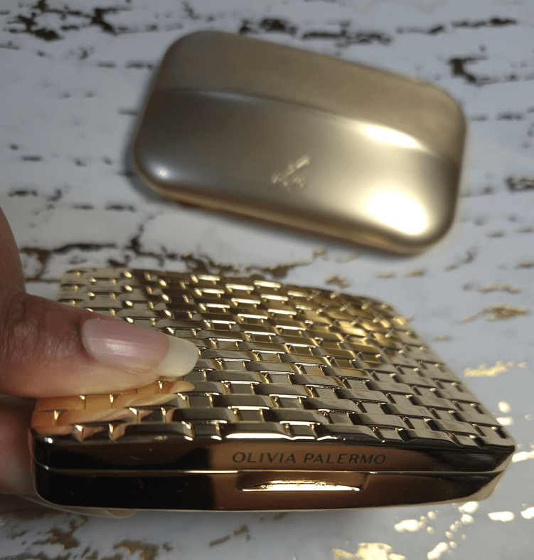 Regarding the eyeshadow palette, it definitely screams luxury. It isn’t something you want to carry around in your purse or travel with it. Olivia wanted the old Hollywood glamour look and feel to her products, so this is something that you would want to keep on a vanity.
