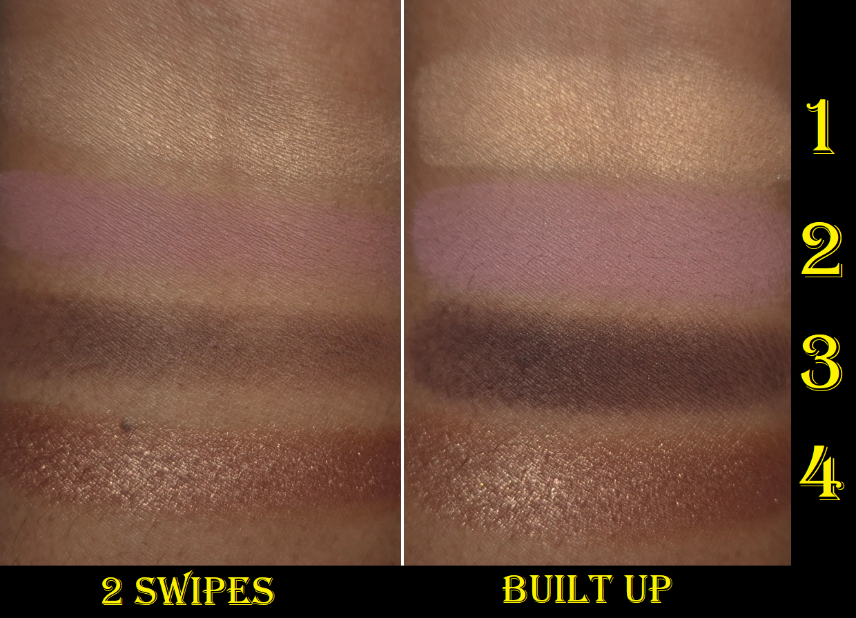 I have swatches for those curious how similar or not the shimmer eyeshadow from the Orchid Palette is compared to the Tea Rose Lid Lustre. Tea Rose has more purple compared to Shade 4, which is more of a Rose Gold.