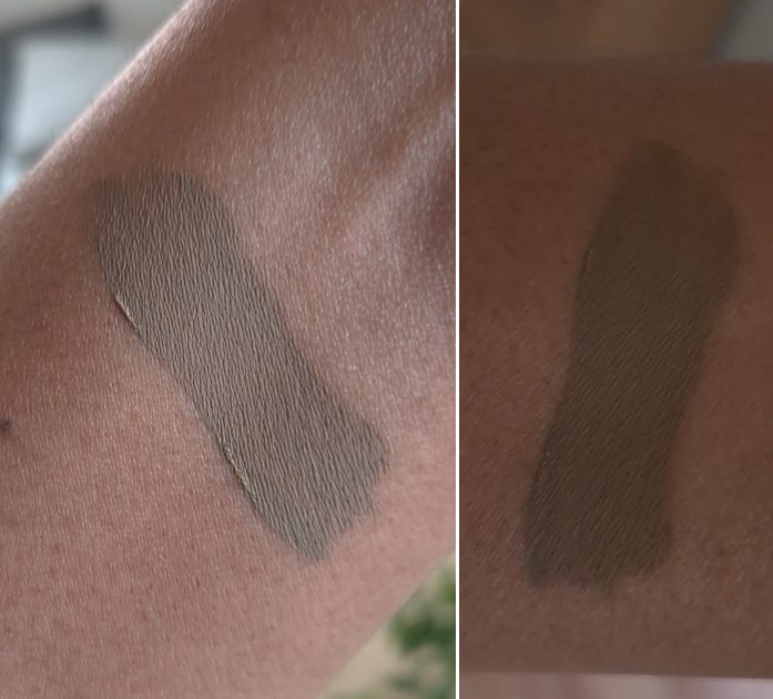 I was so excited to buy Mimi because I figured it would go very well with neutral and green eyeshadows that are my go-to kind of looks lately. However, I did not expect it to look so brownish-grey with a slight tinge of green. The weirdest part though is that my cell phone camera makes the swatch look way more green than it is in person. It was driving me absolutely crazy! The eye swatches were accurate, but every arm swatch looked so green! I can’t explain how my phone could capture the color on the applicator correctly, but not the swatch within the same photo!