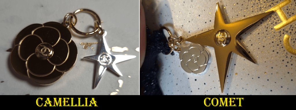 When opting for the holiday packaging, customers could only choose whether they would get the large gold camellia flower charm with a smaller silver comet/star or the large gold comet with the smaller silver camellia. Over the course of the winter season, I ended up getting both.