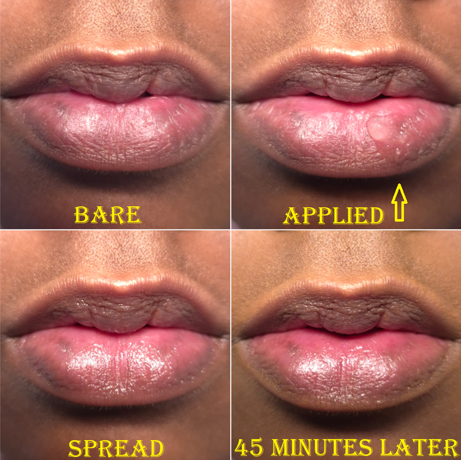 After applying the Hydra Beauty Micro Serum, I’m left with a somewhat shiny finish on my lips, which have the tiniest bit of grip. I can wear this alone as a gloss or balm, but the occlusive gel layer is so lightweight that I need to reapply it at least once or twice throughout the day, especially since it’s easily removed while eating. When I rub my lips together, it feels truly unlike any other lip product I’ve used. Also, this is not fragrance-free, since it has a slight fruit-candy type of scent.