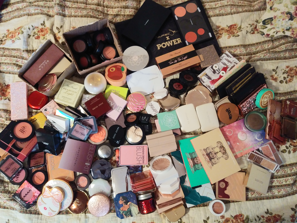 I love all of these glosses, but as a low-pigment product, I had to prioritize the best ones and ones that still needed to be reviewed. It’s actually easier to show a photo of which ones survived the first round of declutters (left side) and which ones got left behind purely for being old (right side with the exception of the extra Too Faced Hangover Pillow Balms that I just had too many shades of).