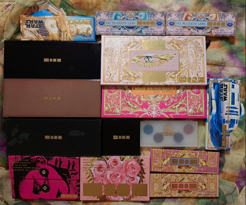 Row 2: (L to R): Nuxe, Fantasy Cosmetica, Vieve, Sigma, Pat Mcgrath, and Suqqu.