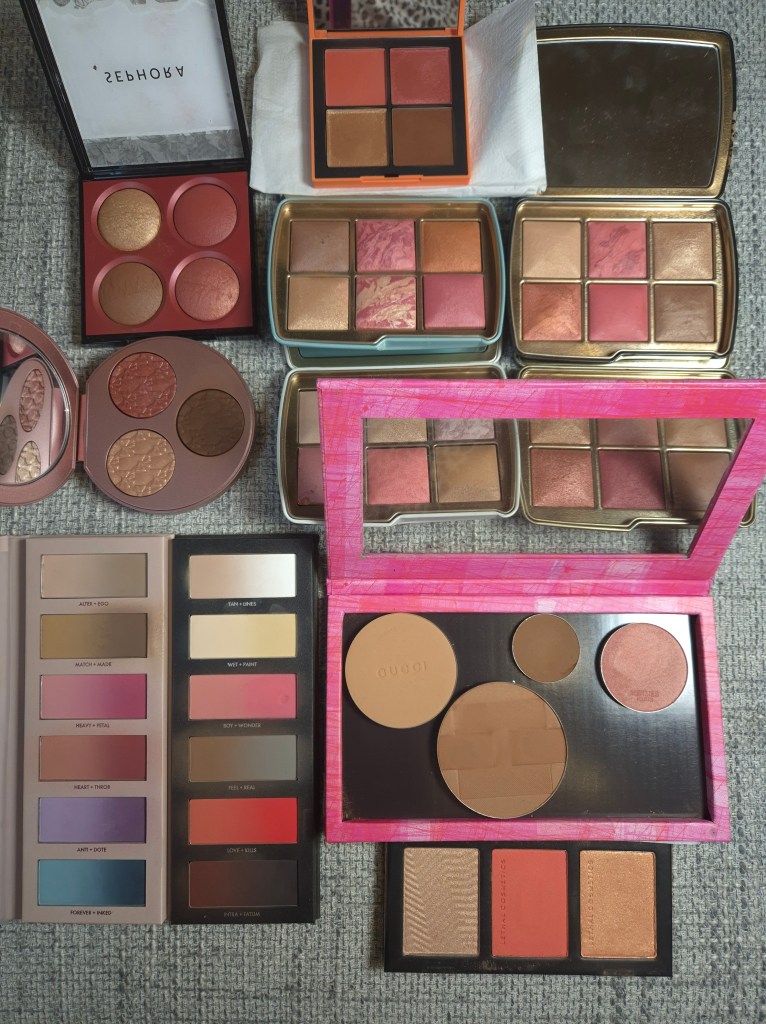 The Bronzing Duo and Eyeshadow Quad are among my heaviest based on size. The Cheeky Posh blush is small and doesn’t have that much extra weight, but I figure that’s because the component isn’t refillable like the other two. I’m including it because it has the same style of packaging as the others, and I still feel bougie when I handle it.