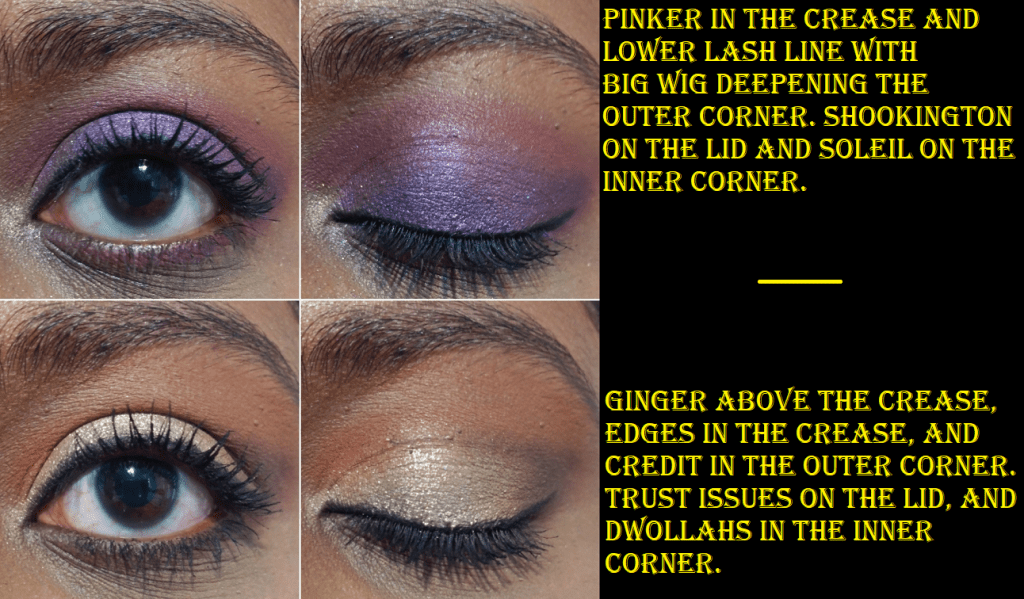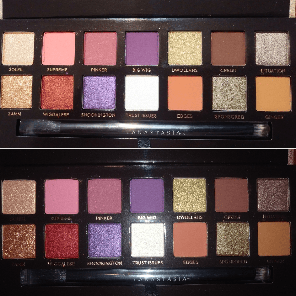I like all the looks I’ve created with this palette. I have to build up the shade Credit for it to deepen the outer corners the way I like and Ginger doesn’t show easily on my skin, but I like the color variety I get with Supreme, Pinker, Big Wig, and Edges. The shimmers are great. They are definitely a step up from Urban Decay’s shimmer formula. I like that the shimmer particles from ABH tend to be so small but very reflective. Zamn is the exception as those glitter particles are large. Trust Issues and Dwollahs are about medium sized.