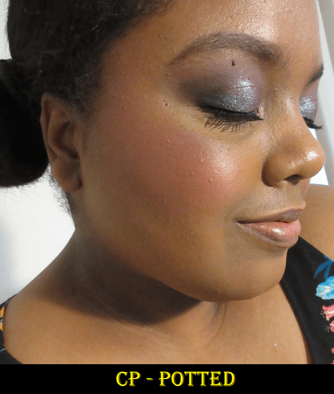 Find the Book is intended for face and body use, but I have not tried to wear this anywhere else. I can’t stand wearing body makeup, so that will not be demonstrated today. As I mentioned earlier, it moves and stays too creamy on the eyes. On my cheekbones though, it does dry down but it’s not transfer-proof. I still get sparkles that come up on my finger when I touch my face.