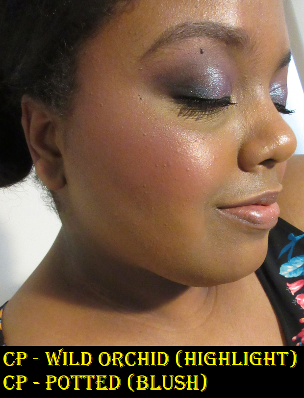 I applied a light amount of 100 Aker Wood below. As for Mind Over Matter, the tone matches me really well to the point that I had to build it up in the demonstration photo below in order for it to be seen on my cheeks. Adding more also emphasized the amount of glitter specks that can be seen. The extra sparkles aren’t so much to stop me from wanting to use this highlighter though. I have only worn these over natural and dewy foundations. I can attest to these melting better into my skin the dewier my face is.