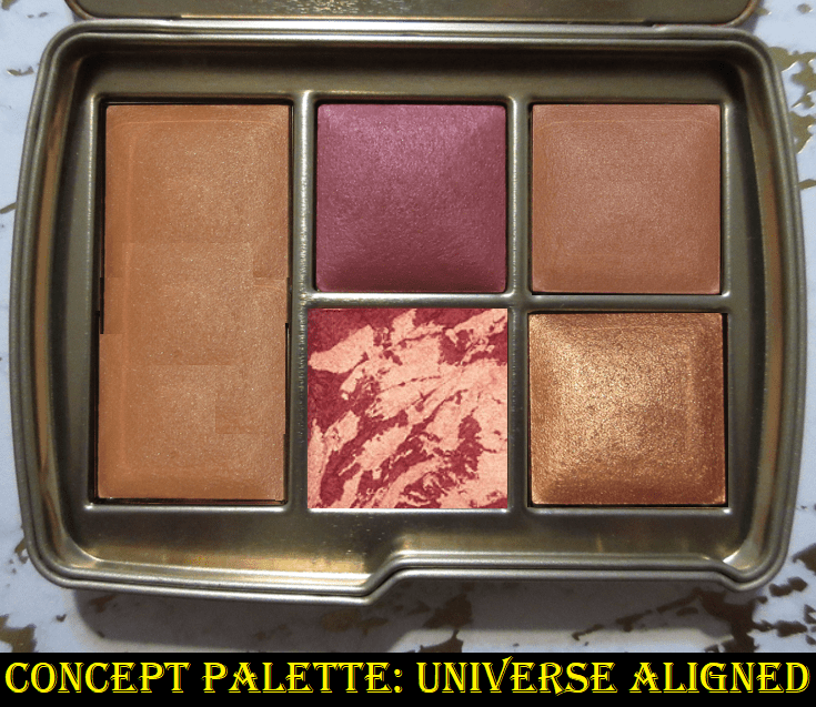 The third concept palette that I nicknamed “Universe Aligned” is what I proposed above if Hourglass took the three Volume III shades and At Night blush and put it in the Universe Unlocked packaging with Rose Heat.