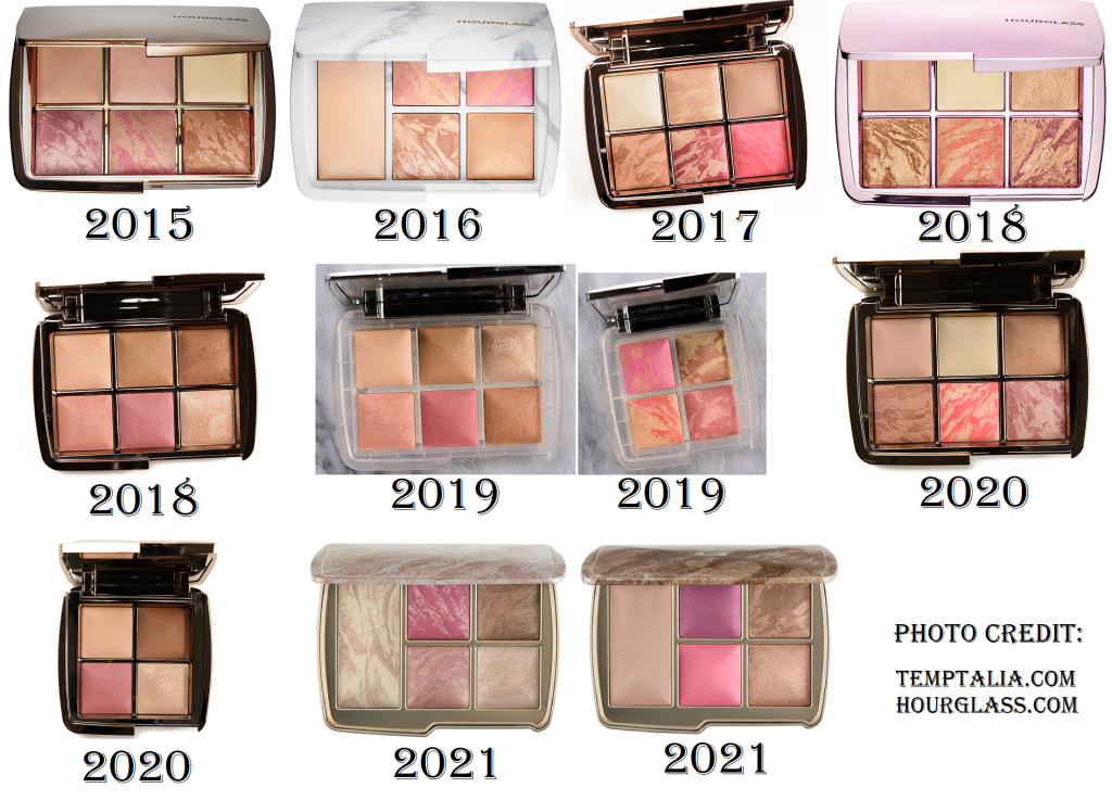 Year after year, I waited for Hourglass to release something where I could use more than just 1 or 2 powders out of the bunch. By 2019, I began to view the brand differently when they continued to re-release shades without even having covered the full color spectrum. That’s like if a brand started releasing monochromatic palettes for the holidays and came out with a purple one, a blue one, and then a green palette. The following year, rather than release an orange, yellow, or red they shift instead to making a purple-blue palette, and then a blue-green palette, and so on. Many customers began to wonder why a particular range of skin tones were being catered to while everyone else was ignored. Fun facts: Dim Light and Diffused Light were repeated 5 times. Luminous Bronze Light, Iridescent Strobe Light, and Mood Exposure were repeated 2 times. All of the shades in the Sculpture Ambient Lighting Edit Quad were repeated shades from the previous year’s Ghost Ambient Lighting Edit Palette. There are also several shades in the full face palettes that were from the permanent line already. In addition, so many of the powders that are labelled as “new” look similar to what Hourglass has already produced.