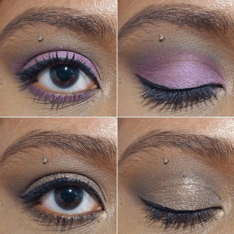 An example of this mascara being worn is in the section with Glowish quad eye looks and the first two eye looks for the Naughty palette. For those curious, I’m using the COL-LAB mascara (in the pink writing not purple) in the last two eye looks showing the Naughty palette.