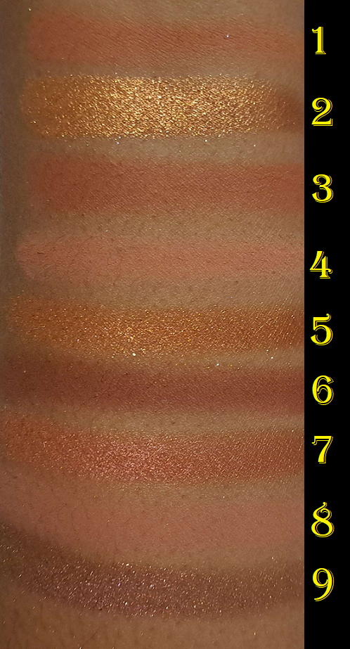 I took the palette photo at night, and for some reason the shadows look darker in the pan than they should, so the photo just above the swatches is a more accurate representation.