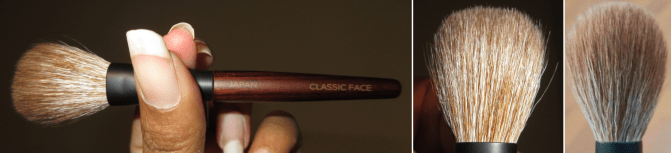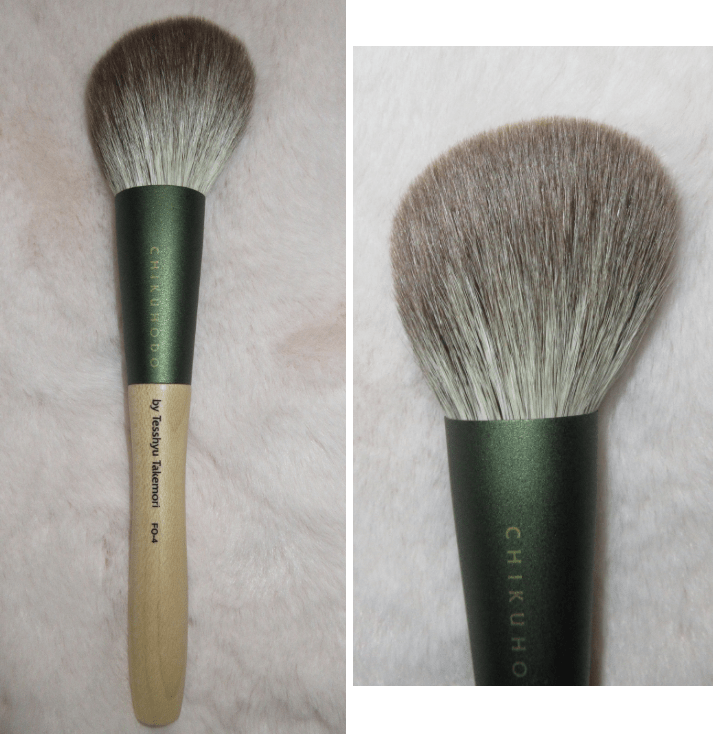 The comparison photo on the left is of the Chikuhodo FO-9, one of my biggest face brushes. These are similar in size, but the Jumbo Bronzer brush is denser and therefore feels firmer as it glides across the skin. The FO-9 is my main finishing powder brush of choice (when not using the Dior Powder No-Powder), so that’s why the Jumbo Bronzer is one of my two main powder bronzer brushes.