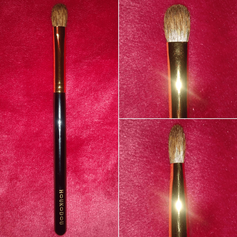 This brush reminded me of the Houkodou GS-1 for its size, but it’s not as soft and the GS-1 is better at both applying and blending eyeshadow.