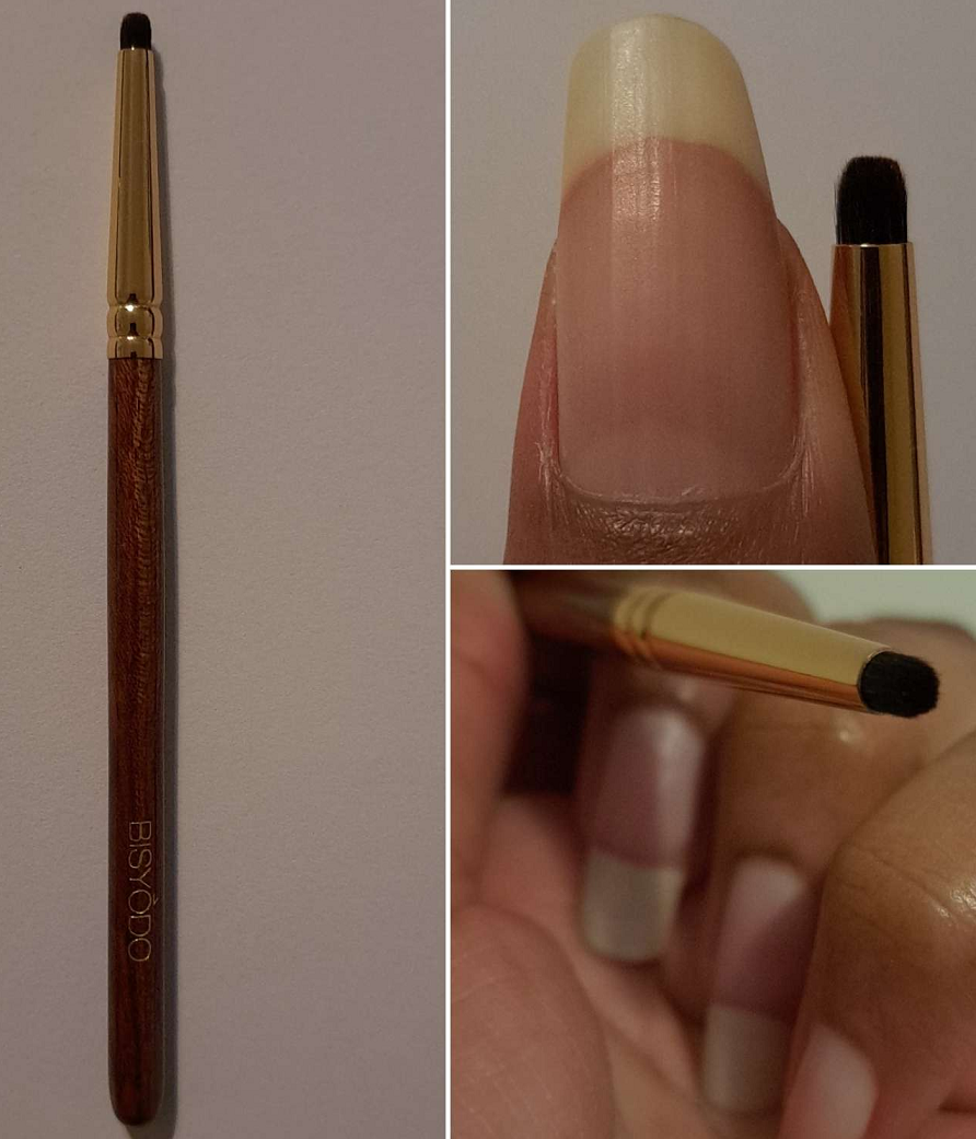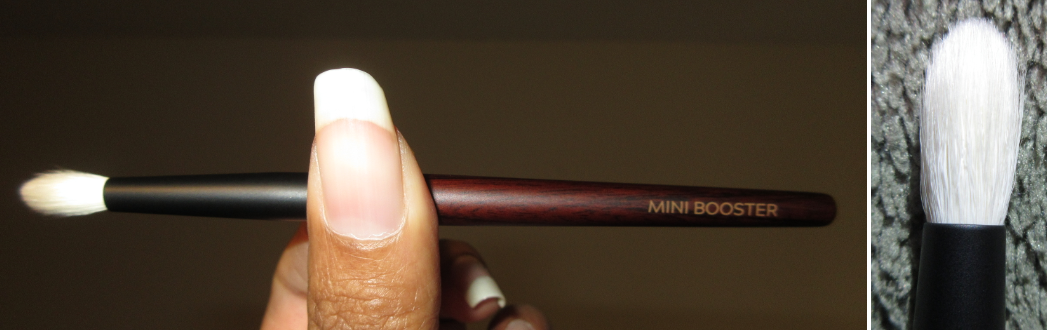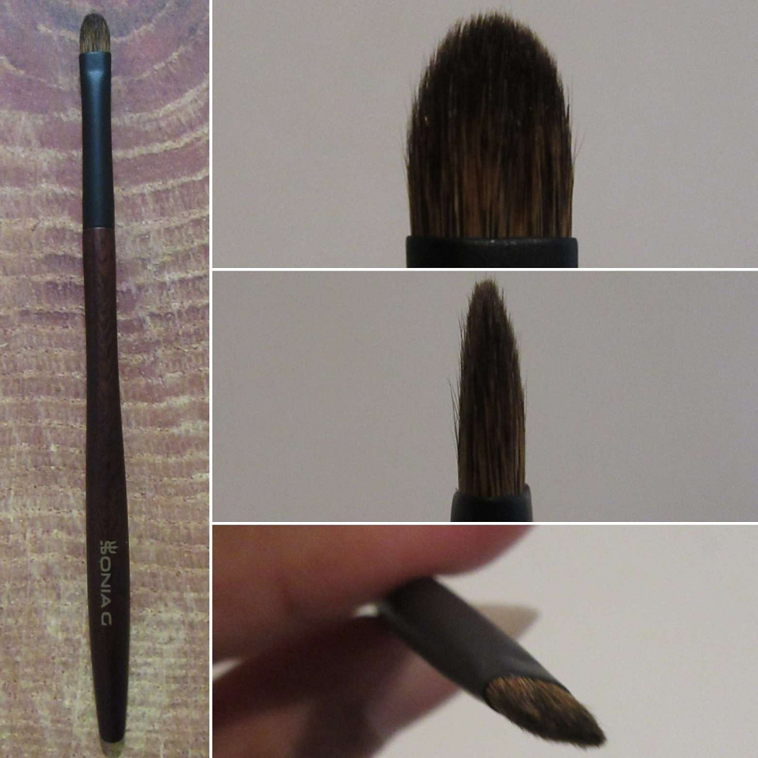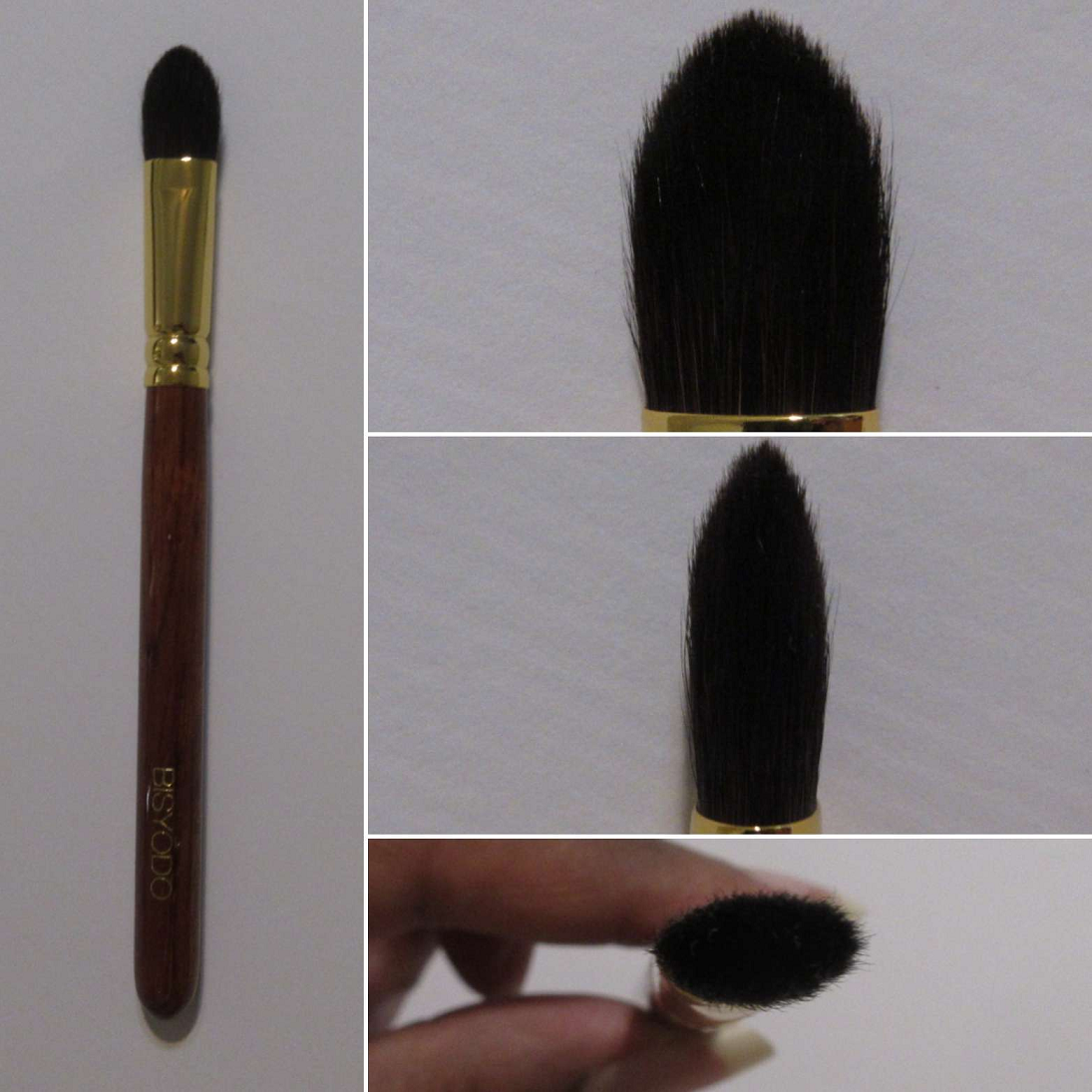 Because of the pointed tip, it reminds me of the Mizuho MB120, but this brush is much firmer and applies product more precisely and more concentrated.