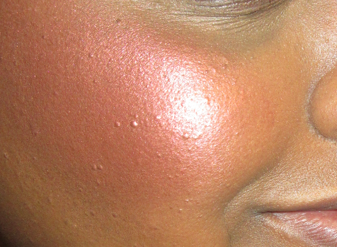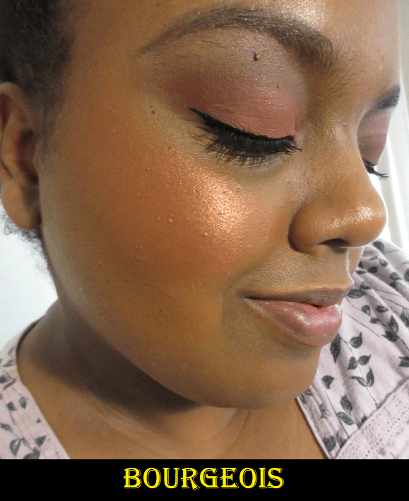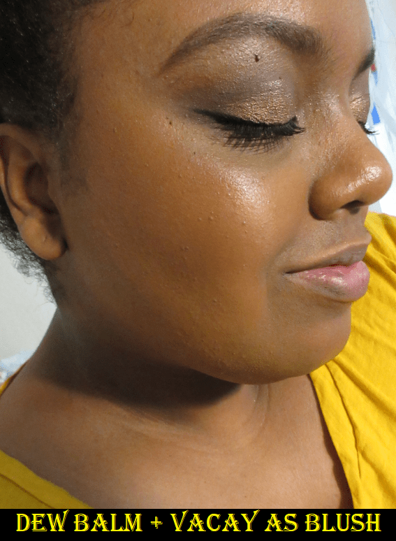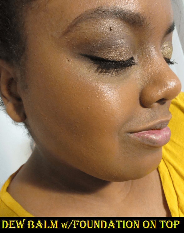 This product, like many highlighting balms, disturbs my makeup underneath. Thankfully, the shine is still visible under foundation. I figured out that I like this product when I’ve applied it to my cheekbones, then I take whatever foundation is left on my brush or sponge and apply it over the top of the Dew Balm. It still gives me shine without the Vaseline look or sticky texture. I can leave it like that or use the Dew Balm as a wet base to apply a highlighter on top of it for a very intense shine. I have an example of what it looks like as a base for a powder highlighter in the Mented Bronzer section.