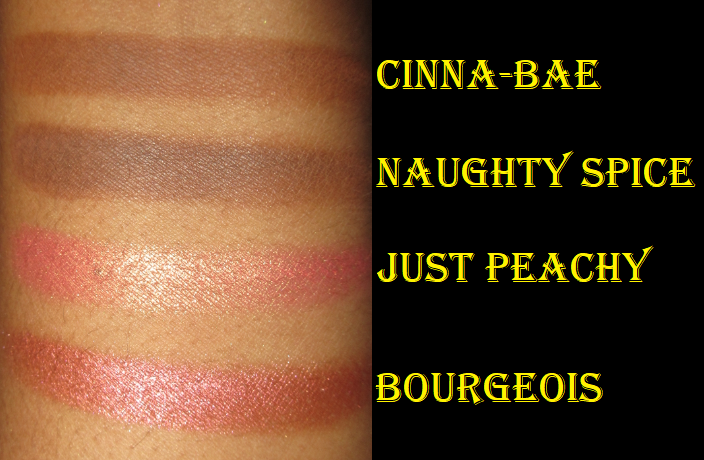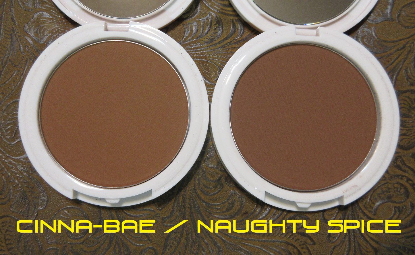 These bronzers look very similar on the skin, but Cinna-Bae is on the warm side and Naughty Spice is more neutral.