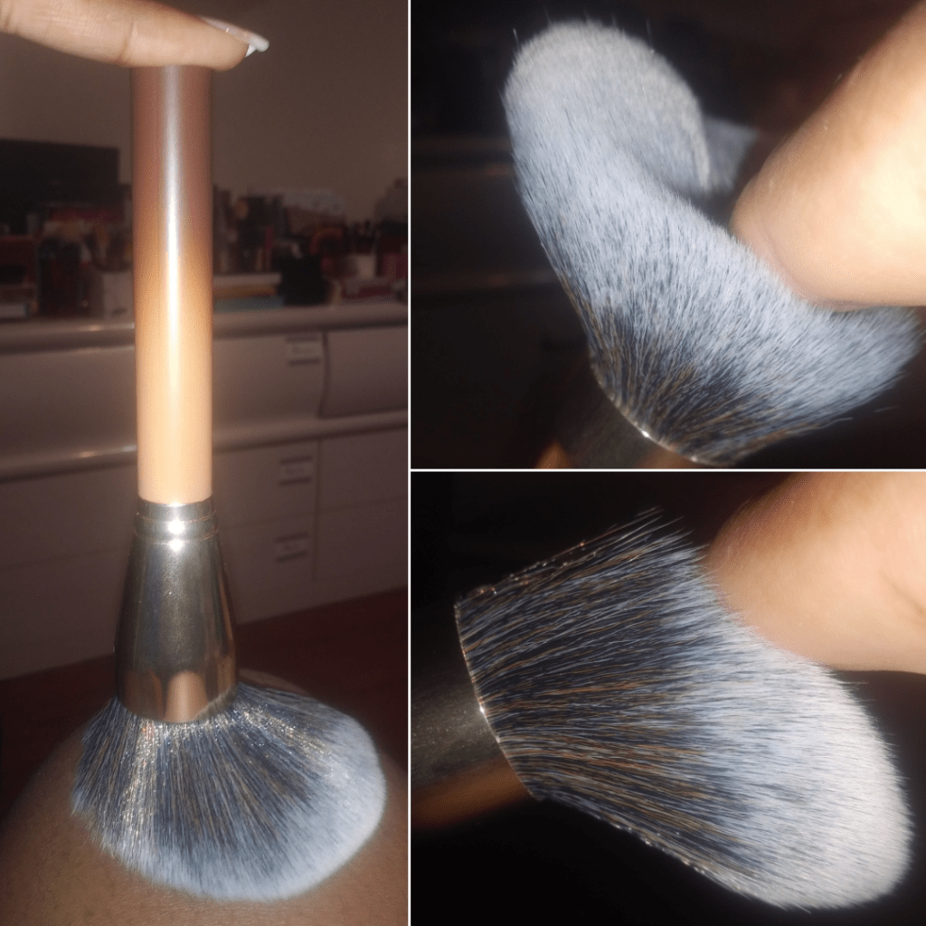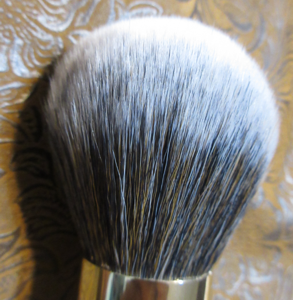 This brush is the biggest in my entire collection and also the heaviest. I think this brush is weighted because the ferrule is very heavy in a way that isn’t proportional to the heaviness of the ferrule of the Angled brush. I’ve only had one other makeup brush that was weighted in order to create a better balance for how the brush should be held and applied to the face, to intuitively allow the user to apply the right pressure with the brush. I’m not sure if the ferrule weight of the Large Powder brush was chosen for this reason, or if it was purely to allow this brush to be able to stand upright on a flat surface with ease.
