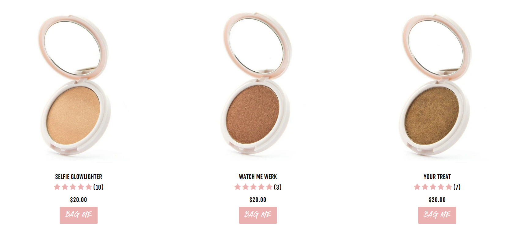 As blushes or blush toppers, these are unwearable for me. It comes down to the reflectivity of the shimmer. The Focal Point Glowlighters also come in traditional highlighter shades of golds and bronzes. This formula is much better suited for highlighting purposes. For those who like highlighters at this level of intensity, getting one of their standard shades (pictured below from their website) would be my recommendation.