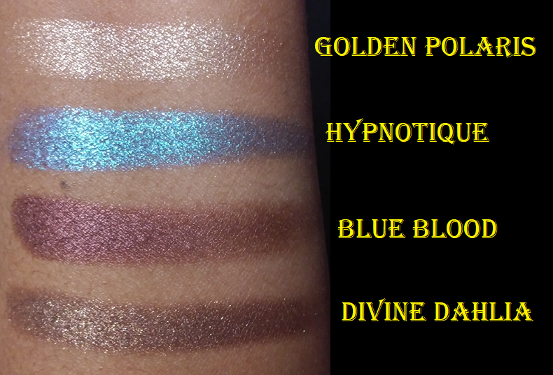 Interstellar Icon is the quad I purchased with the money I made from selling Nocturnal Nirvana. I’m not much of a blue lover, except for use on my lower lash line, so that’s a slight negative against it. The Blue Blood color is the same as from Decadence and the mini I own, so I used to reach for the mini to use that in my eye looks and keep this one as new as possible until the quality inevitably drops and this becomes the “fresher” one. Now that I don’t have that palette with me, I’ve started using this pan of it again. Divine Dahlia is my favorite shade in the quad and the reason I typically reach for this.